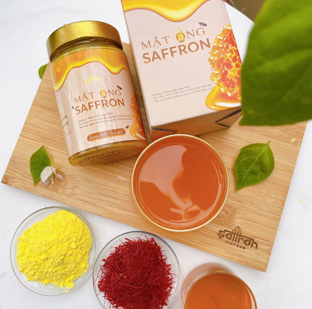 Bộ sản phẩm cao cấp kết hợp mật ong với bánh sáp ong tự nhiên trong hộp quà sang trọng.